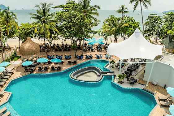 Våkn opp med havet som nærmeste nabo på Centara Ao Nang Beach Resort & Spa Krabi – et innbydende hotell rett på stranden i populære Ao Nang. Her møtes moderne komfort og thailandsk feriestemning, og hotellet passer like godt for par som for familier. Du kan se frem til lange, avslappende stranddager, og hvis du ønsker å være i aktivitet, tilbys det morsomme aktiviteter for både store og små gjester.