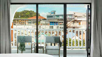 Dobbeltrom med 3 ordinære senger og fransk balkong
