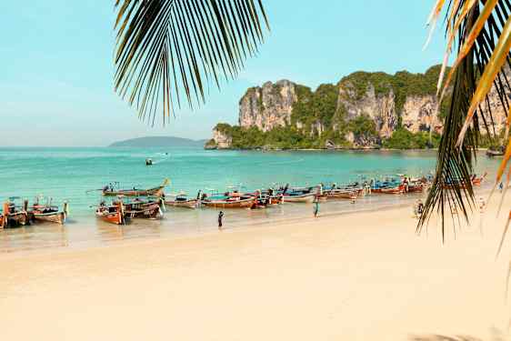 Railay Beach kombinerer dramatisk natur med rolig strandliv. Her kan du fylle dagene med klatring, dykking og padling – eller bare nyte havet og de myke sandstrendene.