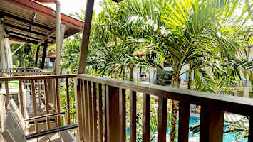 Baan Karon har lyse, hyggelige rom i moderne thailandsk stil, alle med balkong eller terrasse.