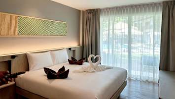 Her kan du starte dagen med en forfriskende dukkert i bassenget, som raskt blir et naturlig samlingspunkt i ferien. Hvis havet frister, ligger Karon Beach bare en kort spasertur unna – perfekt for deg som drømmer om sand mellom tærne og Phukets krystallklare vann. Etter dagens eventyr tilbyr hotellets restaurant velsmakende måltider, og du kan avslutte kvelden med en drink i baren. Ønsker du å være aktiv i ferien, er det også et treningsrom tilgjengelig, slik at du kan vedlikeholde treningsrutinen din mens du er på ferie.