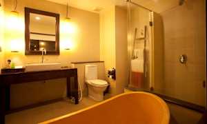 Premier Suite har også mikrobølgeovn, minibar (ekstra kostnad) og badekar.