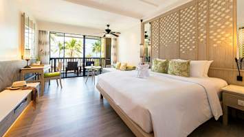 Katathani Phuket Beach Resort tilbyr rom med pen innredning, treinnslag og lyse farger.