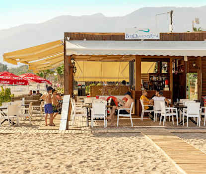 Denne stranden er smalere enn Kleopatrastranden. Den blir litt bredere et par hundre meter fra sentrum. Sanden er på grensen til å være grus og er full av glatte, runde småsteiner. Det er ingen fare for at du skal gå tørst eller sulten her, for det er mange restauranter og barer å velge mellom, kanskje enda flere enn på Kleopatrastranden.Ulasstranden