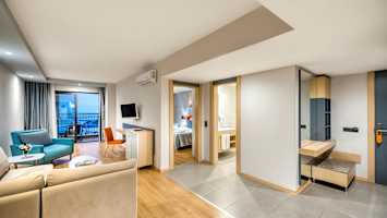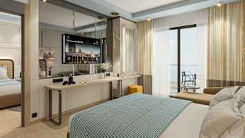 Dobbeltrom med balkong og begrenset havutsikt