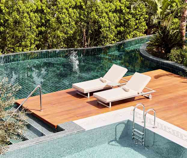 Hver villa er omgitt av en privat hage, som gir følelsen av å bo i en innbydende park. Du kan velge villaer med alt fra ett til tre soverom, noe som gir god plass også for større reisefølger. Som en ekstra service følger det med sykler til alle som bor i villaen – så hvis du ikke orker å gå til restauranten eller badelandet, er det bare å hoppe på sykkelen og trille av gårde.
