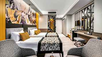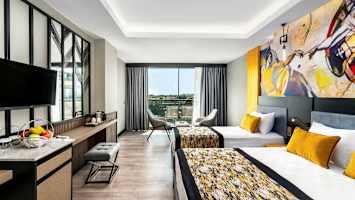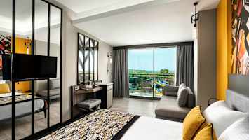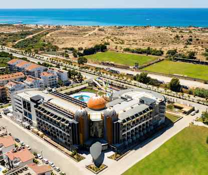 Hotellet har et morsomt badeland med fem vannsklier. Høyde- og aldersgrensene varierer fra sklie til sklie. Barn må alltid være under tilsyn av en foresatt.Side og omgivelsene byr på flere herlige sandstrender.