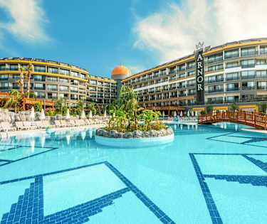 På Arnor Deluxe Hotel & Spa er det et fint bassengområde med flere basseng, både utendørs og innendørs. I hotellets badeland venter vannsklier fulle av fart og moro. Hotellet har også en privat del av stranden, hvor hotellets All Inclusive er inkludert.
