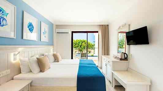 Calimera Side Resort tilbyr koselige dobbeltrom og leiligheter for opptil seks personer.
