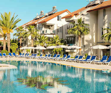 Hotellet har to store og innbydende bassengområder med bassengbar. Ved det ene bassengområdet er det en roligere atmosfære, og her spilles det ikke musikk. I tillegg er det et mindre basseng med vannsklier. Vannskliene er åpne kl. 10.30–12.00 og kl. 14.30–16.00. Barn som er 6 år eller yngre kan bruke vannskliene i følge med en voksen.