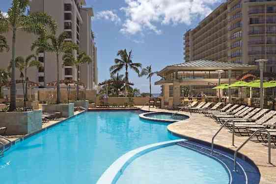 Embassy Suites by Hilton ligger i hjertet av Waikiki Beach Walk og har en livlig beliggenhet omgitt av spisesteder, underholdning og shoppingmuligheter. Ferieanlegget har suiter med ett eller to soverom, og hver av disse har en separat stue, et spisebord, en wet bar, et lite kjøleskap, en mikrobølgeovn og en kaffetrakter. Gjestene kan glede seg over gratis Wi-Fi og en daglig frokost som lages på bestilling. Selv om den kostnadsfrie kveldssamlingen for øyeblikket ikke er tilgjengelig, gjør hotellets førsteklasses beliggenhet, kun noen få skritt fra Waikiki Beach, det til et helt ideelt valg.