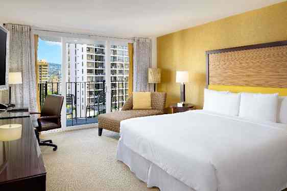 Hilton Waikīkī Beach Resort & Spa er et fullservicehotell med 601 rom som tilbyr vakker utsikt over havet og fjellene. Gjestene kan glede seg over den berømte restauranten MAC 24/7, Magic Mystery Show og Asana Spa. Rekreasjonsdekket i 10. etasje kan skilte med et stort basseng og boblebad, en 9-hulls minigolfbane, cabanas ved bassenget, dagsenger, bålpanner og et område for plenspill med Hang 10 Bar. L. B. L. E. Lobby Lounge har «The Wall», en 146-tommers 4k LED-skjerm med direkte visning – den største på Hawaii-øyene. En ballsal på 743 kvadratmeter har plass til opptil 600 personer for banketter, supplert med 836 kvadratmeter med fleksible møterom. Feriestedet ligger bare ett kvartal fra Waikīkī-stranden og shopping-, spise- og underholdningstilbudene på Kalākaua Avenue.