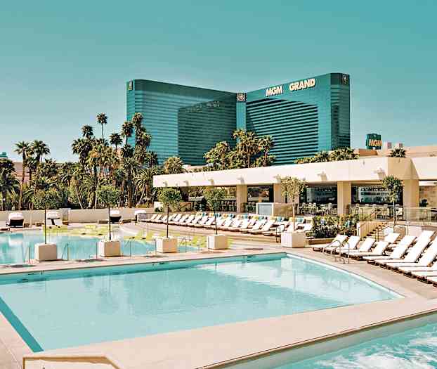 MGM Grand har fire store basseng, tre boblebad og en rundt 400 meter lang "lazy river". Fem serveringssteder med drikke og enklere retter på menyen ligger i tilknytning til bassengene. Foretrekker du mer privatliv, kan du leie en cabana.