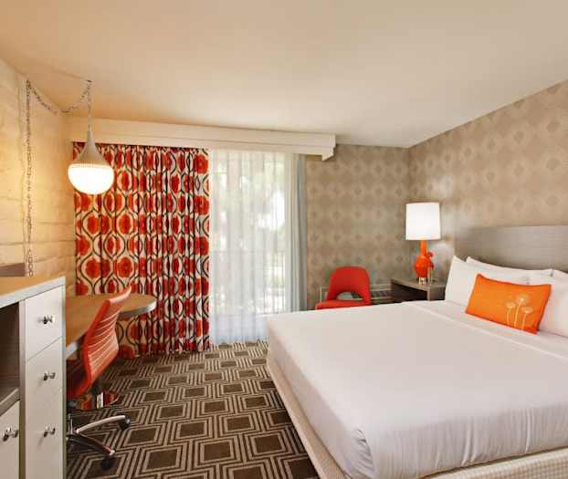 Alle rommene på The Garland har egen balkong, LCD-flatskjerm-TV, kjøleskap og kaffemaskin med kaffe og te. The Front Yard at The Garland serverer kalifornisk mat. Gjestene kan også kjøpe en kopp Seattle's Best Coffee på The Front Yard. Om kvelden kan besøkende nyte en drink på uteplassen i lobbybaren eller salongen.