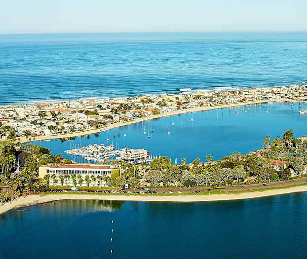 Bahia Resort Hotel ligger i en tropisk, frodig og hyggelig hage på en egen halvøy ved Mission Bay og består av flere bygninger. Her kan du bruke dagen ved bassenget eller nyte den vakre utsikten fra hotellets private del av stranden i Mission Bay. Hotellet byr på flere forskjellige aktiviteter, blant annet kajakk og surfing. For de minste gjestene finnes det en barneklubb. Med bil kan du enkelt komme deg til sentrum av San Diego.