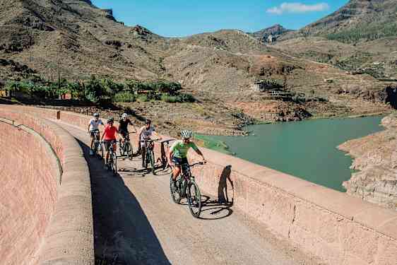 Med shuttle blir vi kjørt til Ingenio, hvor syklingen begynner. Vi ruller gjennom den lille, sjarmerende byen før vi fortsetter inn i den rolige og naturskjønne Guayadeque-dalen. Terrenget blir gradvis brattere, men med hjelp fra elsyklene oppleves stigningen som både lett og behagelig. Langs veien passerer vi mandel- og eukalyptustrær, og landskapet blir stadig mer dramatisk jo høyere vi kommer.