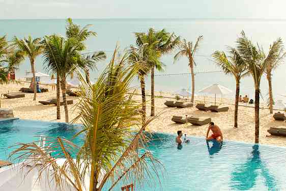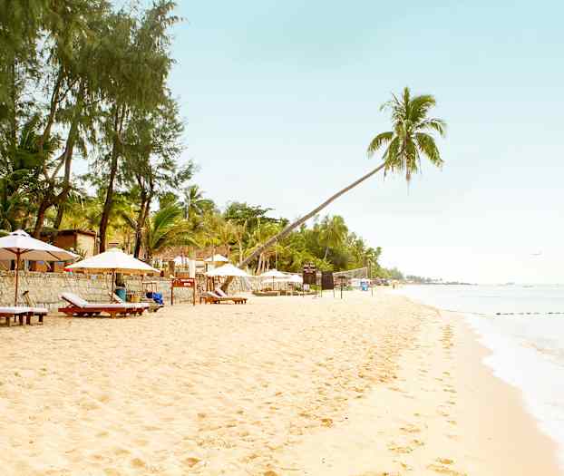 Cassia Cottage ligger på en av de finere delene av Long Beach ved den mest fotograferte palmen på Phu Quoc. Her er solnedgangen magisk og du kan nyte den enten fra en solseng på stranden, fra infinitybassenget eller fra restauranten hvis du spiser en tidlig middag. Hotellet består av to deler, en eldre del med frittstående bungalower og eget bassengområde og en nyere del med et herlig infinitybasseng. Fra hotellets restaurant har du vakker utsikt mot havet og her kan du spise alle måltider. Mellom bassengområdet ved den eldre delen og stranden er det en fin hage med små dammer med vannliljer og en bro.